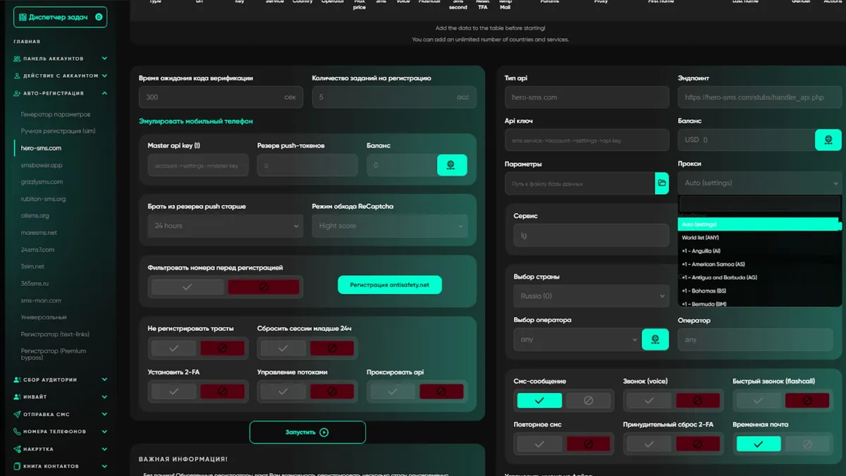 В Telegram Soft - Expert за регистрацию отвечает отдельный большой раздел «Авто-регистрация». Но прежде чем жать на кнопку «Старт», нужно правильно разложить прокси по полочкам.