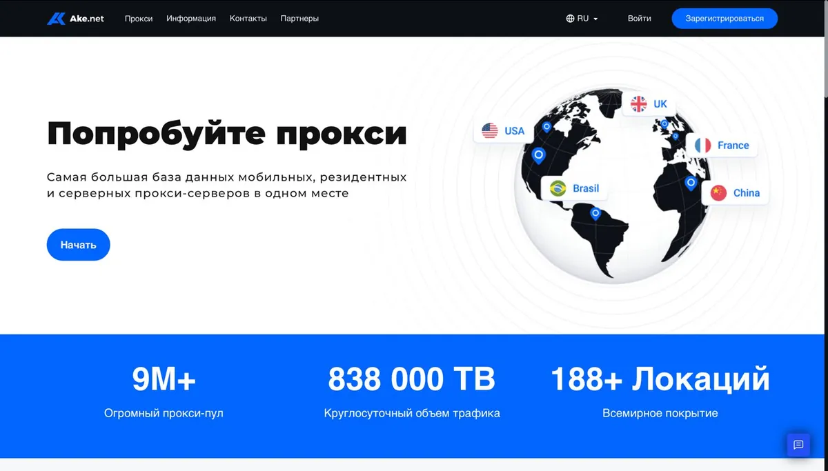 The main focus is providing IP addresses from real users (residential) and mobile operator networks (4G/5G), which ensures a high level of trust from advertising platforms. The coverage includes over 100 countries, including key arbitrage regions such as the USA, Europe, and the CIS. Both manual and automatic IP rotation are supported.
