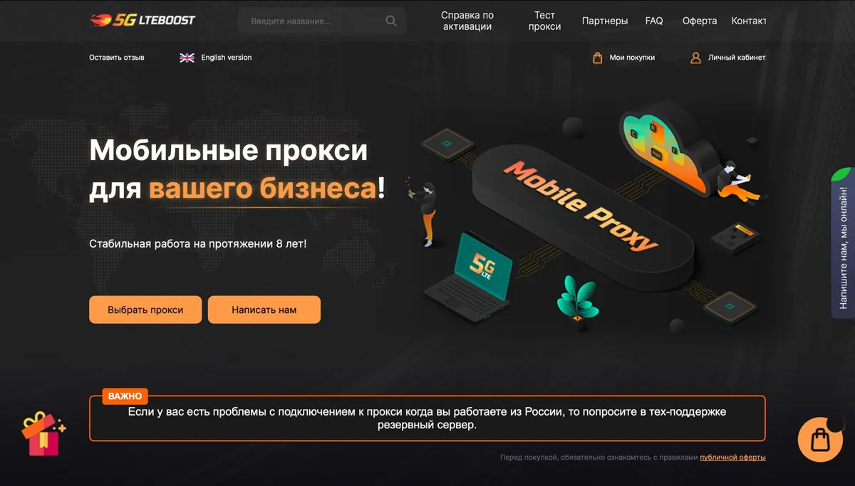 LTEBoost offers mobile (4G/LTE) and residential proxies supporting HTTP(S) and SOCKS5 protocols. The service stands out with flexible IP rotation and coverage of 20+ countries, including the USA, Russia, EU countries, and Asia. Arbitrage proxies are especially valuable as they provide unique IPs for each connection, reducing the risk of blocks in advertising systems.