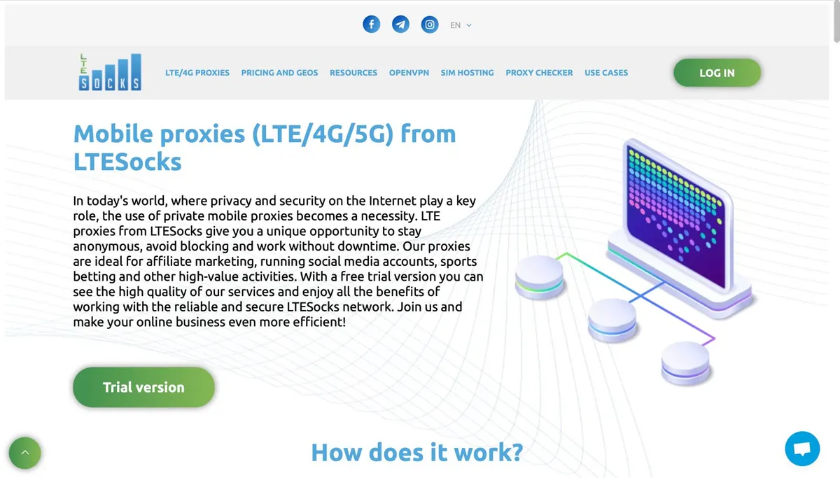 LTESocks specializes in mobile proxies (LTE/4G/5G) that use IP addresses from real mobile operators. This provides a high level of trust from advertising platforms and anti-fraud systems.